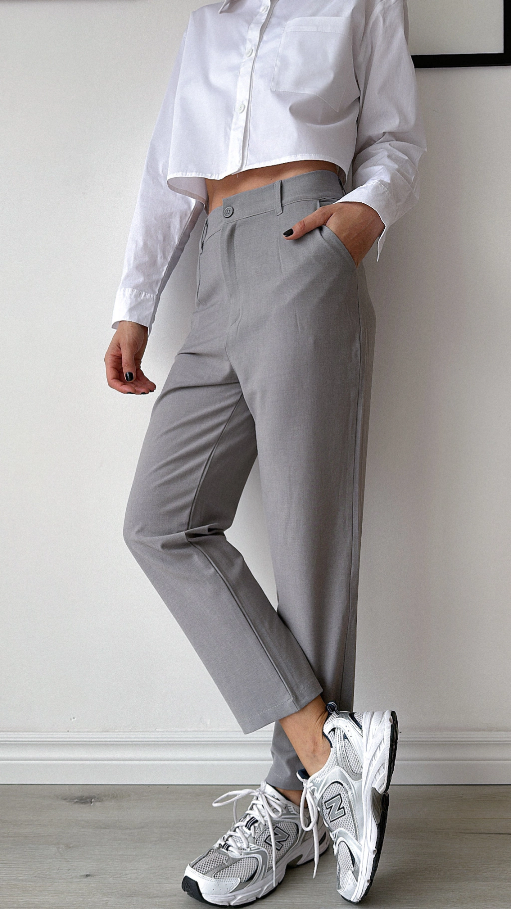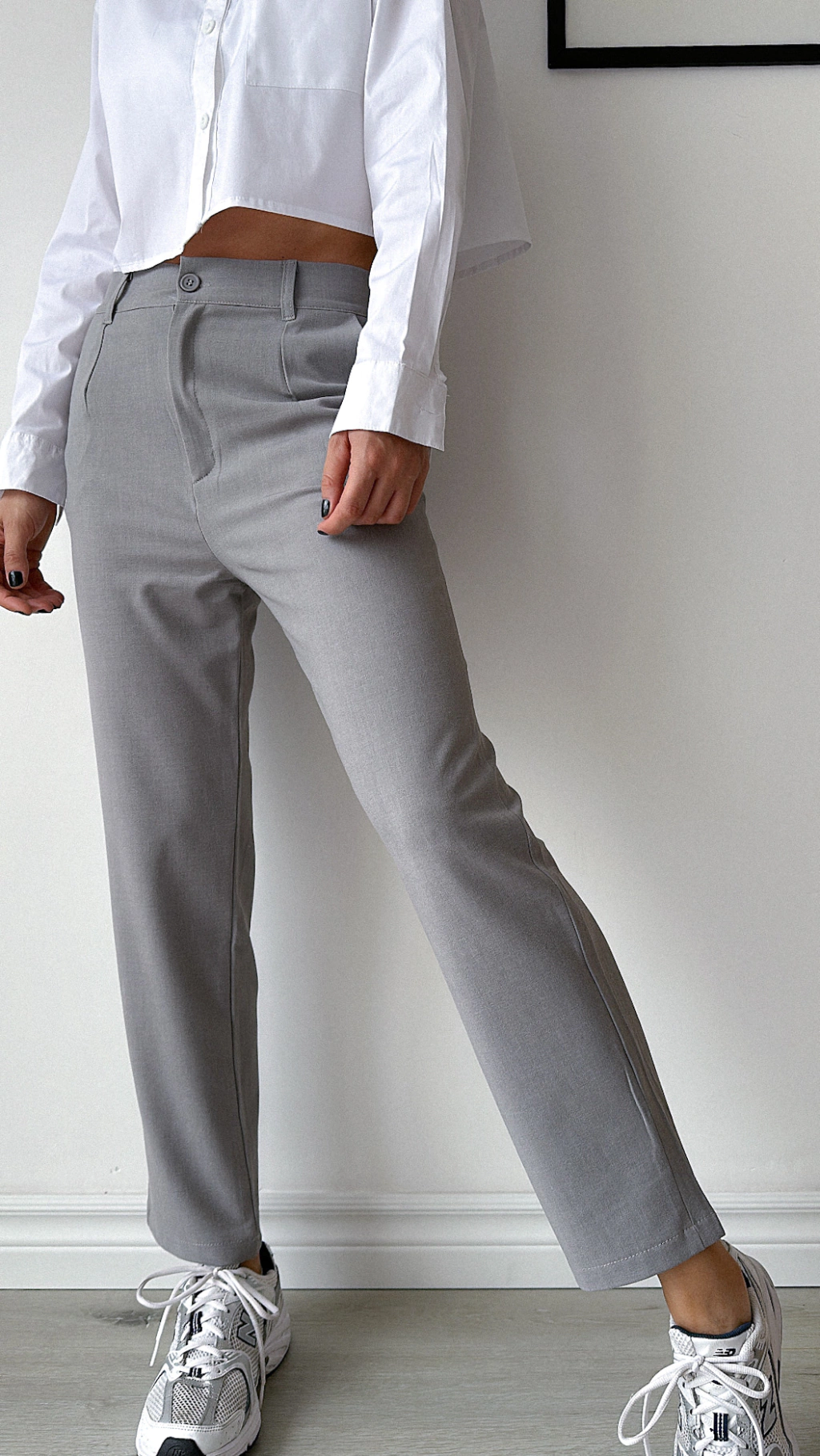 Pantalón sastrero de corte recto con pinzas, bolsillos delanteros y pasacinto para sumar tu estilo. Cierre y botón para un fit impecable. Canchero y versátil, va con blazer y tacos para la oficina o con zapatillas y una remera para un look relajado pero con toda la onda